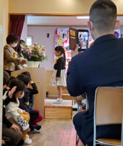 本日は令和2年度の卒園式を無事に執り行うことが出来ました。どんぐりの卒園式はその年その年の子ども達のイメージ(カラー)に合わせた内容でお祝いさせてもらっています。そして一人ひとりに宛てた内容の卒園証書を授与しています。今年の卒園児入場は♪世界に一つだけの花♪の曲に合わせたダンスで始まりました。証書の授与、ハンドベル演奏、自分の思いを綴った手紙、など、子ども達の大きくなった姿を見て頂き感謝の気持ちを伝える事が出来ました。6名の卒園児、本当に立派でした!卒園おめでとうございました。そして卒園児保護者の皆様、これまでご理解ご協力を頂きながら子ども達をお預かりさせて頂き本当にありがとうございました。6名が自分らしく大きくなっていくことをずっと応援しています。