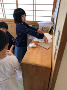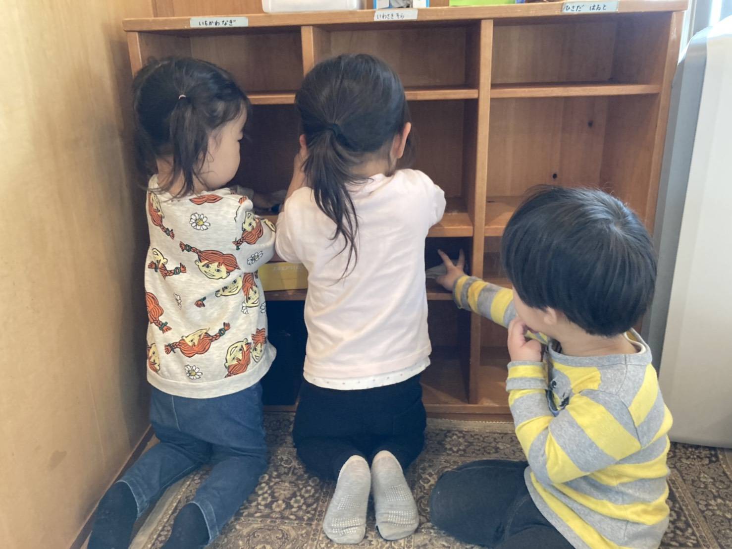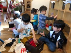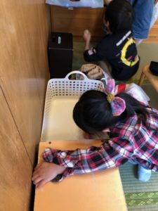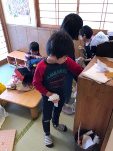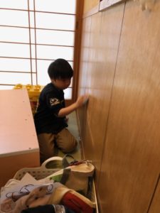 【大きい子から小さい子みんなでロッカーや棚、部屋の掃除をしました】