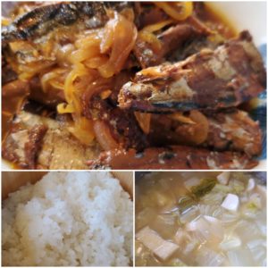☆サンマの蒲焼丼☆白米☆白菜と油揚げの味噌汁