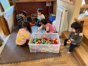ブロックコーナーでは集中して作品を作って遊んだり…