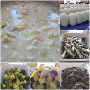 ☆春キャベツと鶏肉のクリームシチュー☆おにぎり☆茹でブロッコリー☆蒸かしさつま芋☆レーズン☆ポリポリ小魚