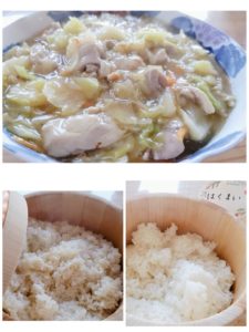 ☆鶏肉とキャベツのあんかけ炒め☆玄米入りご飯☆白米