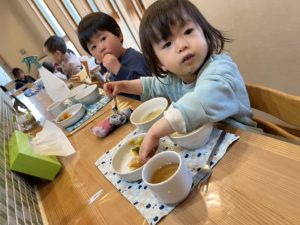 小さい子達もカウンター席を選んで食べています😊