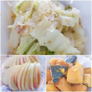☆白菜のおかか和え☆蒸かし南瓜☆りんご