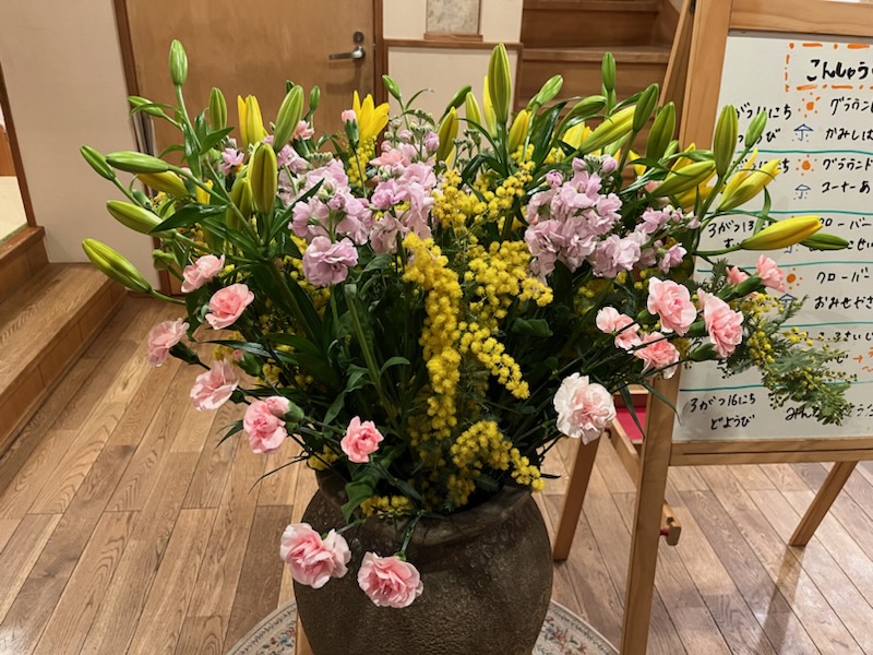 毎週火曜日にお花屋さんからどんぐりの玄関にお花が届きます。