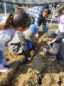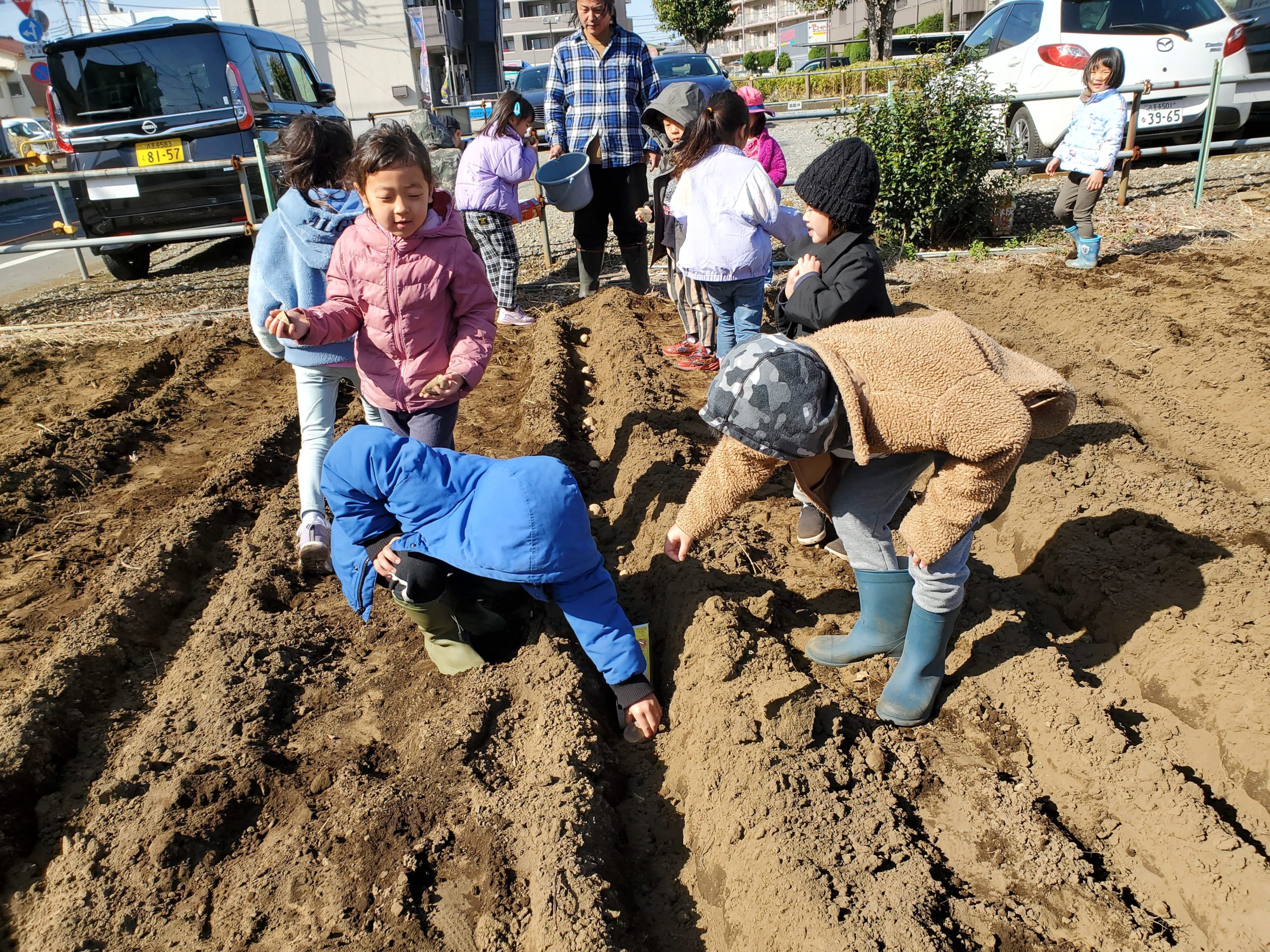 今日は久しぶりに畑に出ました。風が強かったので短時間ではありましたが、やる事をしっかり頭に入れていた年長さんがリードしながらじゃが芋の植え付けを行いました😊